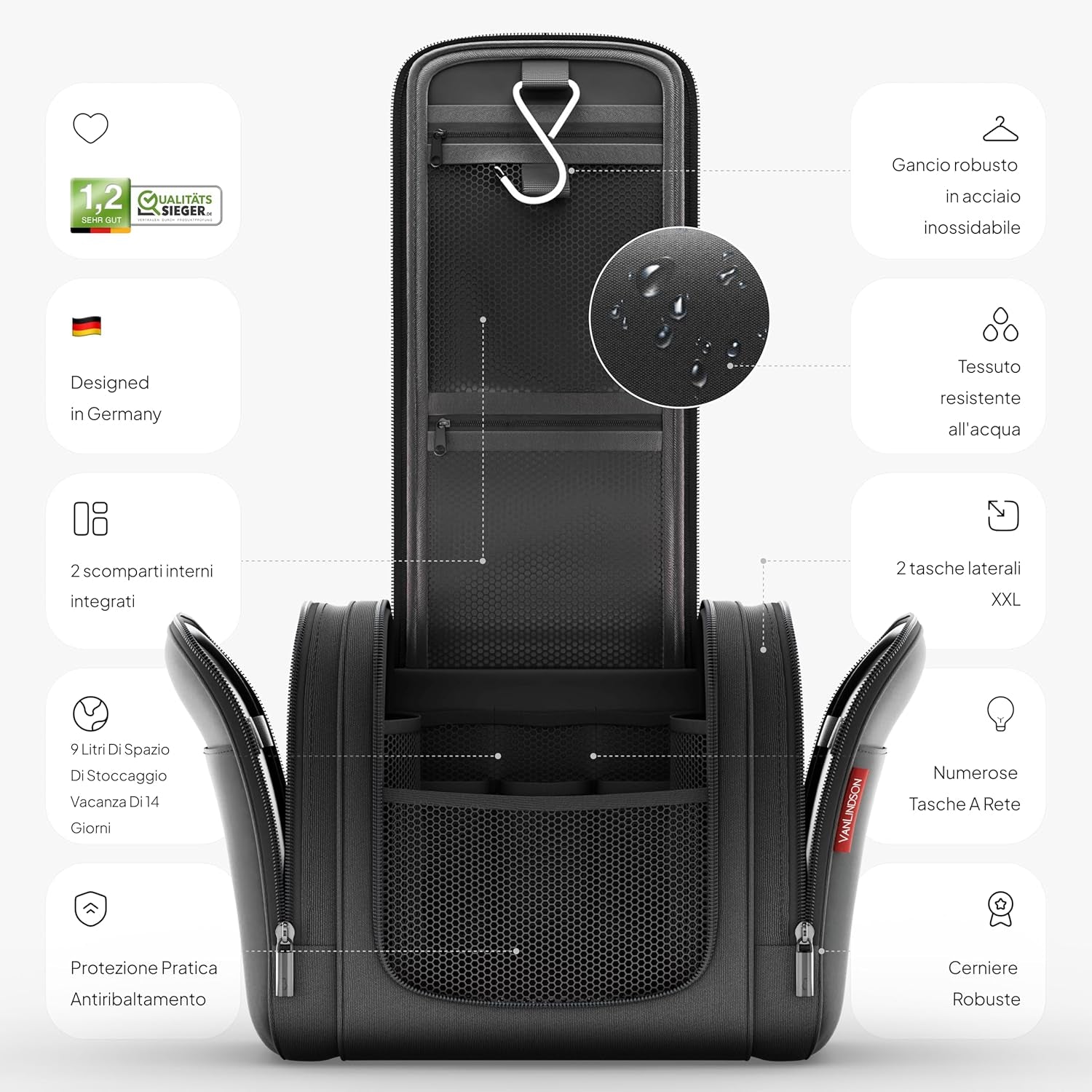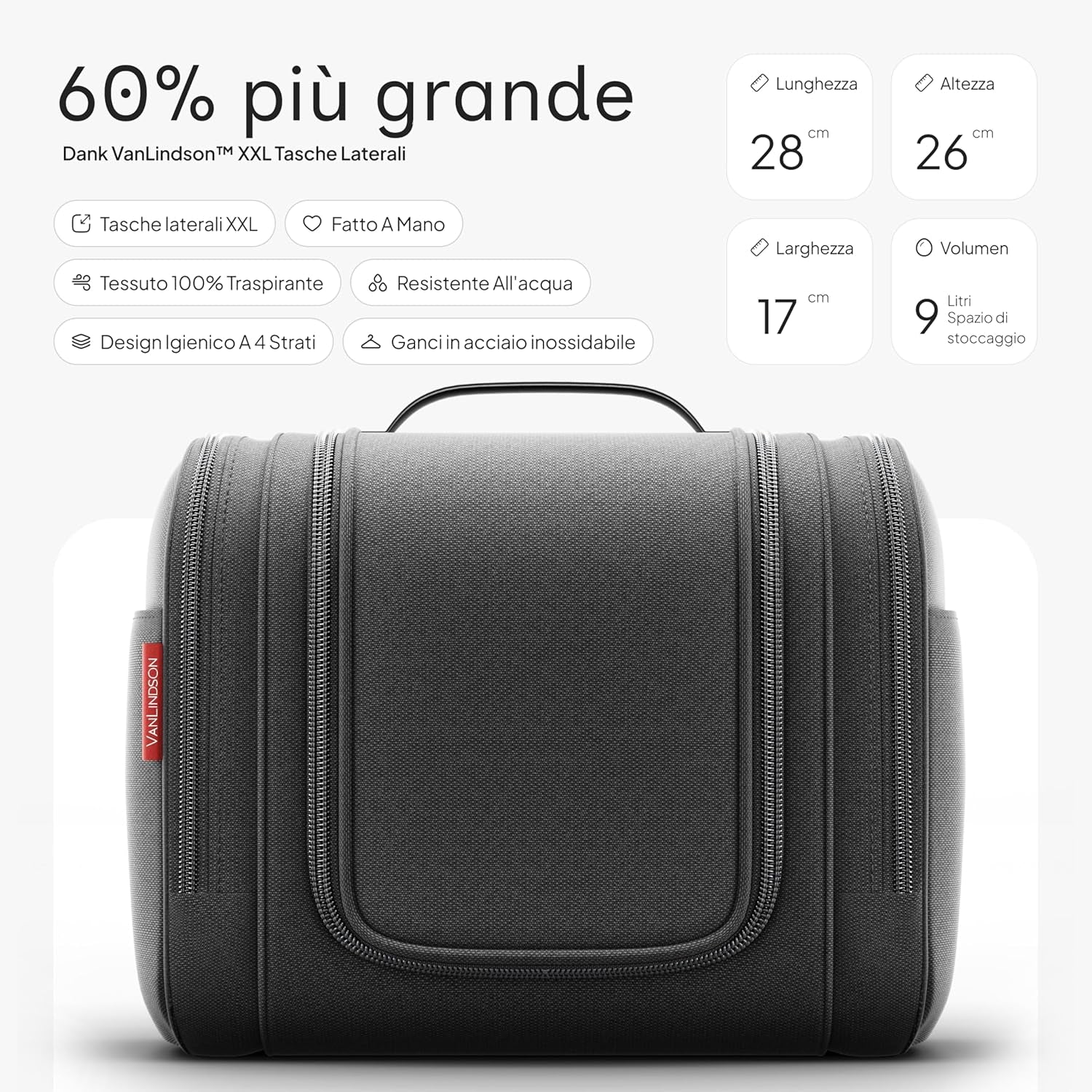 - IDEALE PER VIAGGIARE - Per un'esperienza di viaggio spensierata, la borsa da toilette VanLindson vi aiuta a risparmiare tempo e nervosismo quando fate i bagagli. Concentratevi sull'essenziale: Immergetevi in nuove avventure.