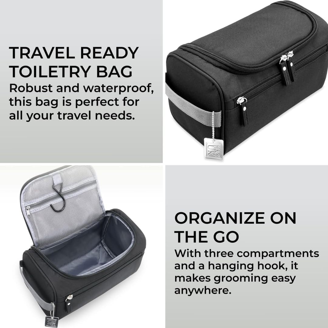3 Scomparti Spaziosi: La porta trucchi da viaggio offre 3 scomparti per la massima organizzazione. Può contenere facilmente oggetti pesanti come shampoo e detergenti per il corpo. Ogni scomparto è ideale per riporre i prodotti per la rasatura appena utilizzat