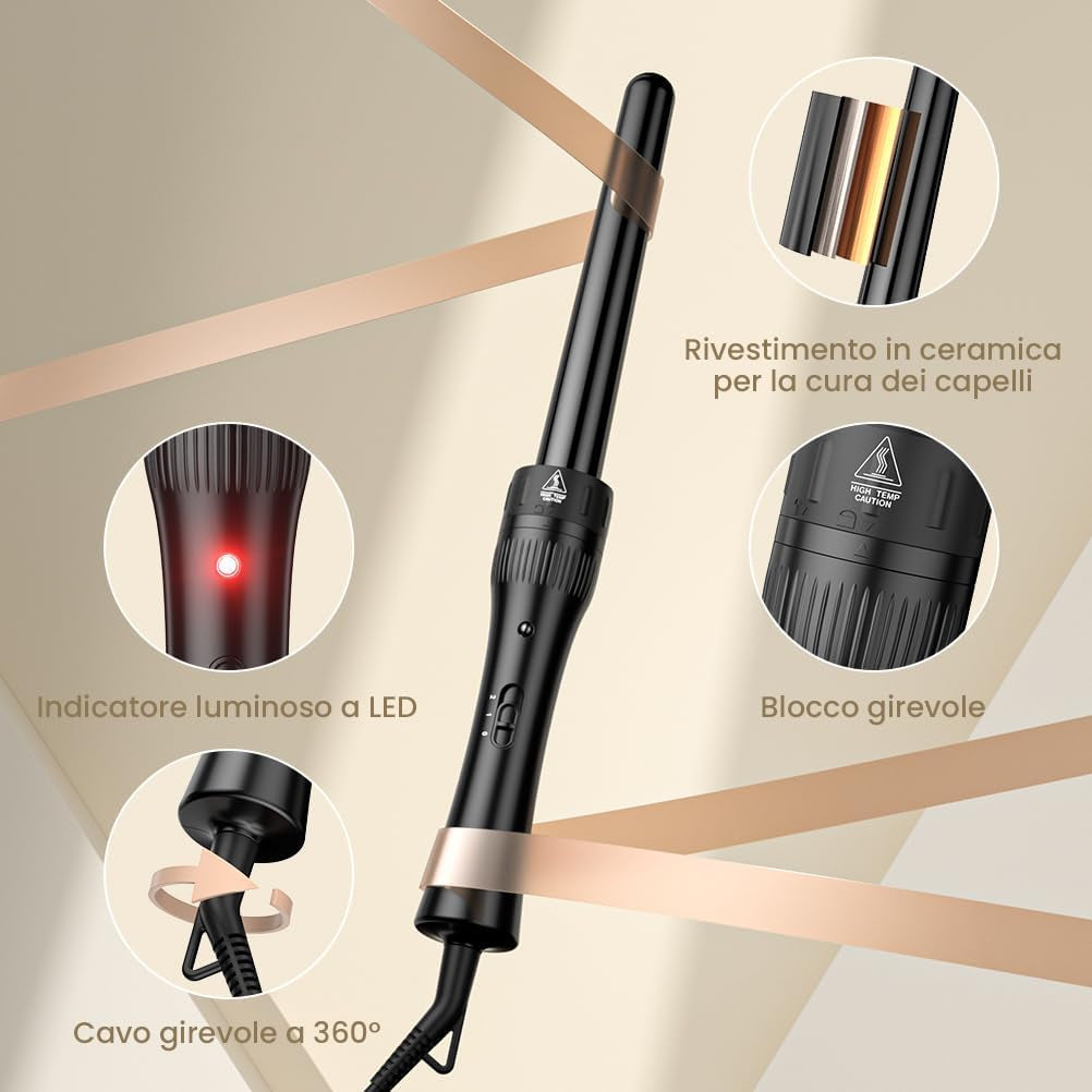- 5 IN 1 CON PIASTRA ONDE: Ferro arricciacapelli set cinque ferri di diametro diverso per realizzare un look sempre diverso e versatile, in base alle diverse occasioni