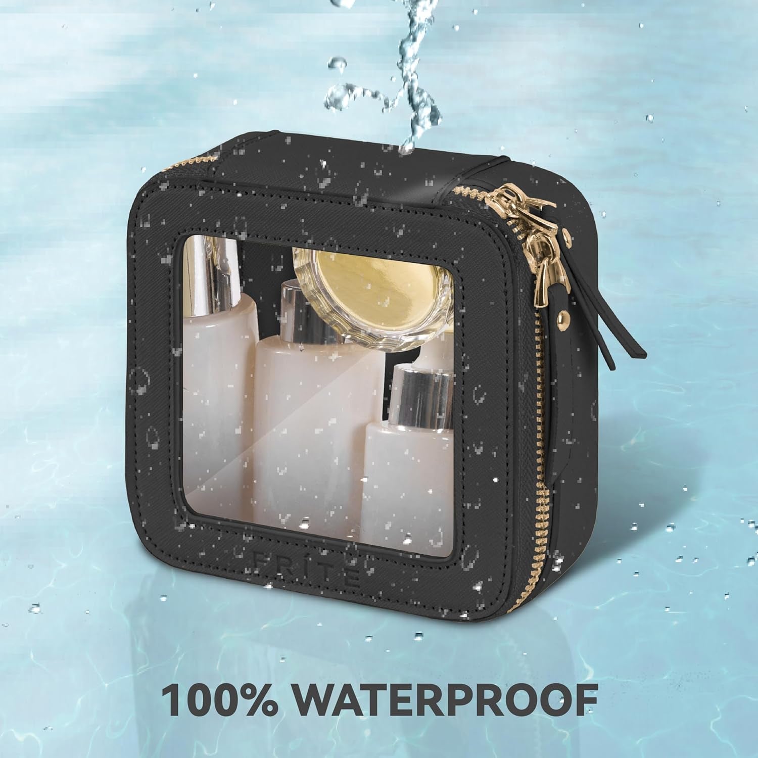 Piccola Beauty Case Trasparente per Borse E Borsette Mini Pochette Impermeabile per Il Trucchi per La Toilette Da Viaggio Elementi Essenziali E Organizer per Auto Con Cerniere (Nero)
