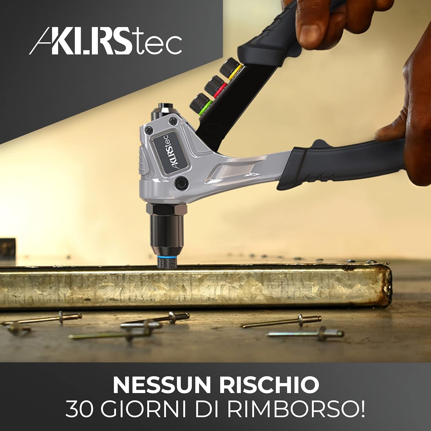 ✅ La promessa KLRStec - Il rischio è nostro: 30 giorni di rimborso! Se non sei soddisfatto al 100% della tua pinza rivettatrice, rimandala indietro e riavrai i tuoi soldi. Senza compromessi! Cosa aspetti ancora?