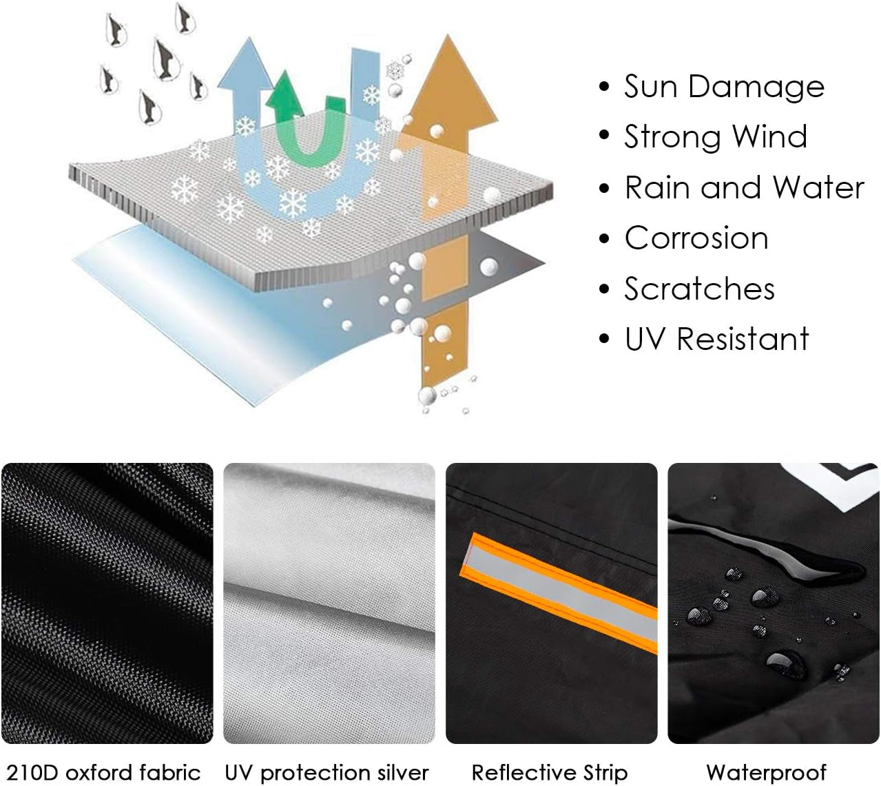 - Resistente e Robusto – Il telo coprimoto è realizzato in tessuto antivento sia la superficie interna che la superficie esterna, è resistente alle intemperie. Grazie alle caratteristiche leggere e morbide, può proteggere anche la vernice dell'auto